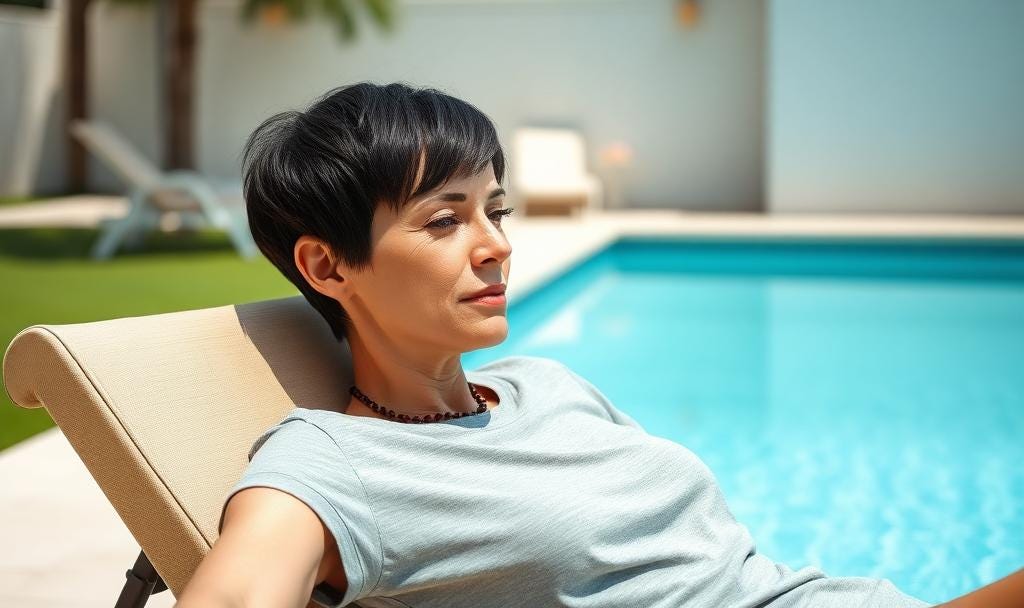 Sunlight shimmered on the water. From her reclining position on the sun-lounger, Winterhill watched the light patterns kaleidoscope about on the restless dance of the pool’s surface. It was relaxing, and beautiful, and next to her, on the neighbouring sun-lounger, Madagascar has just removed her bikini top to soak some sun into areas of her smooth young…